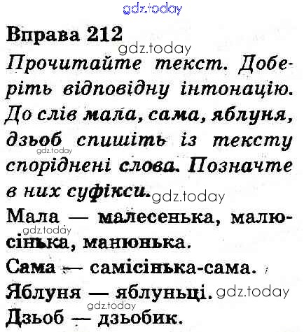 На страницах сайта gdz.today вы найдете учебный и вспомогательный материал, направленный на улучшения знаний школьной программы. ГДЗ - онлайн мир знаний Рішення до Вправи 212 Учебнику по Украинскому языку для 3 класса Захарийчук, Мовчун Грамота 2013