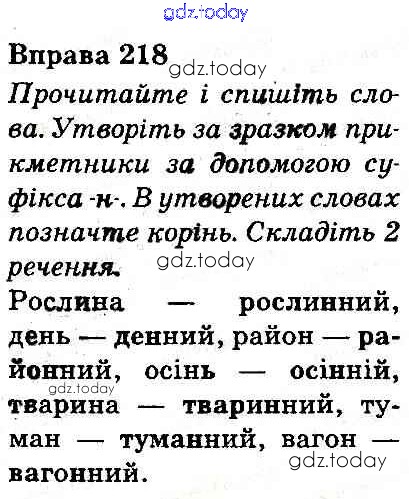 На страницах сайта gdz.today вы найдете учебный и вспомогательный материал, направленный на улучшения знаний школьной программы. ГДЗ - онлайн мир знаний Рішення до Вправи 218 Учебнику по Украинскому языку для 3 класса Захарийчук, Мовчун Грамота 2013