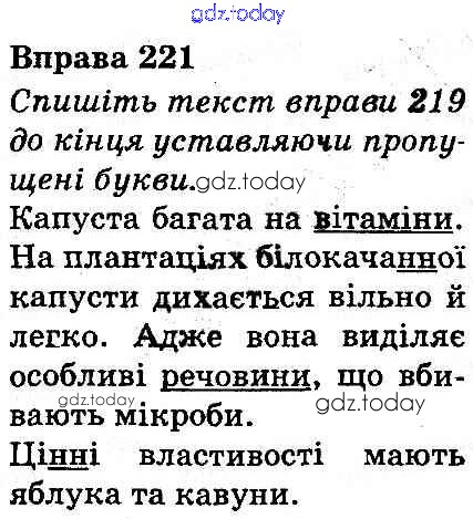 На страницах сайта gdz.today вы найдете учебный и вспомогательный материал, направленный на улучшения знаний школьной программы. ГДЗ - онлайн мир знаний Рішення до Вправи 221 Учебнику по Украинскому языку для 3 класса Захарийчук, Мовчун Грамота 2013