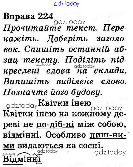 На страницах сайта gdz.today вы найдете учебный и вспомогательный материал, направленный на улучшения знаний школьной программы. ГДЗ - онлайн мир знаний Рішення до Вправи 224 Учебнику по Украинскому языку для 3 класса Захарийчук, Мовчун Грамота 2013