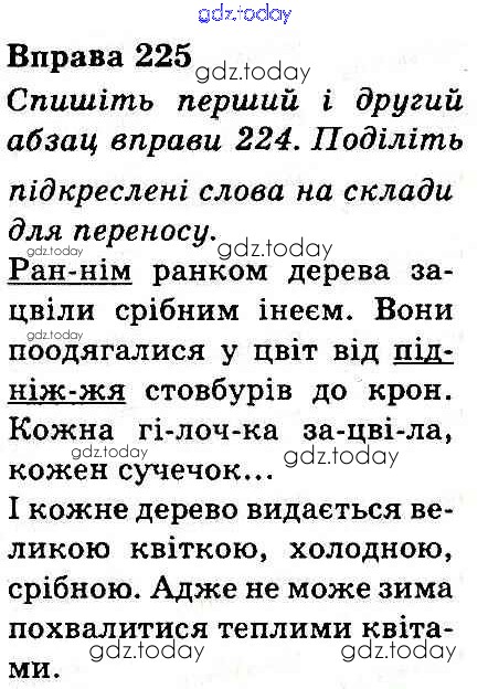 На страницах сайта gdz.today вы найдете учебный и вспомогательный материал, направленный на улучшения знаний школьной программы. ГДЗ - онлайн мир знаний Рішення до Вправи 225 Учебнику по Украинскому языку для 3 класса Захарийчук, Мовчун Грамота 2013