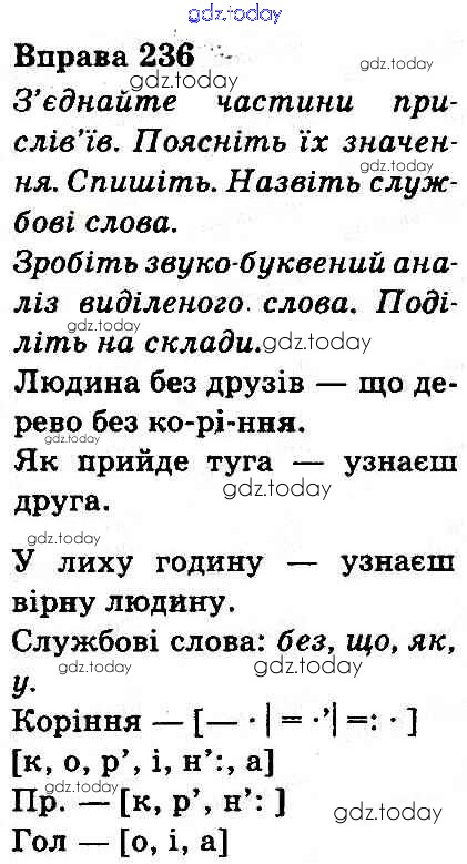 На страницах сайта gdz.today вы найдете учебный и вспомогательный материал, направленный на улучшения знаний школьной программы. ГДЗ - онлайн мир знаний Рішення до Вправи 236 Учебнику по Украинскому языку для 3 класса Захарийчук, Мовчун Грамота 2013
