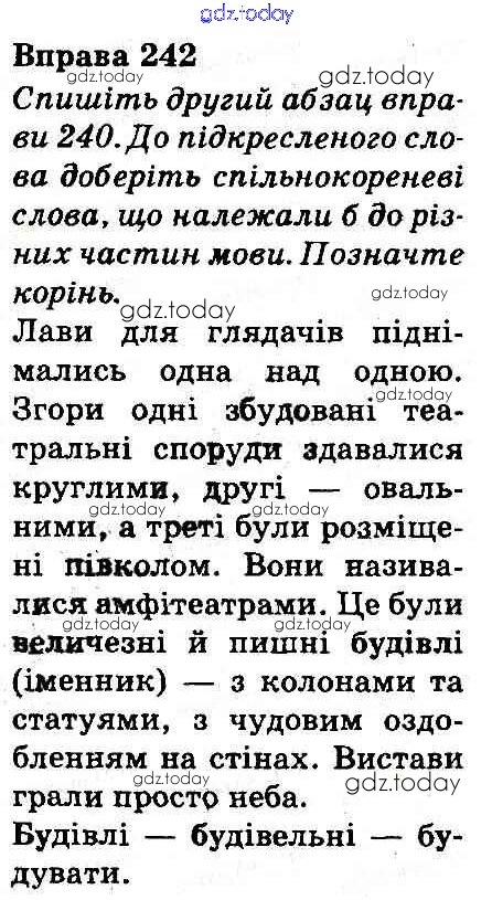 На страницах сайта gdz.today вы найдете учебный и вспомогательный материал, направленный на улучшения знаний школьной программы. ГДЗ - онлайн мир знаний Рішення до Вправи 242 Учебнику по Украинскому языку для 3 класса Захарийчук, Мовчун Грамота 2013