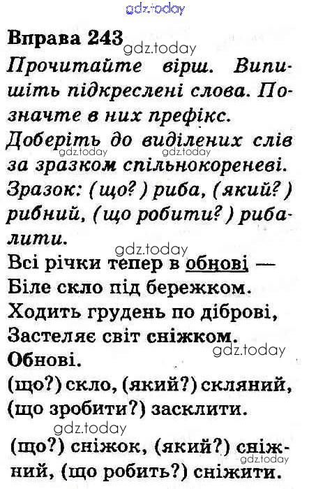 На страницах сайта gdz.today вы найдете учебный и вспомогательный материал, направленный на улучшения знаний школьной программы. ГДЗ - онлайн мир знаний Рішення до Вправи 243 Учебнику по Украинскому языку для 3 класса Захарийчук, Мовчун Грамота 2013