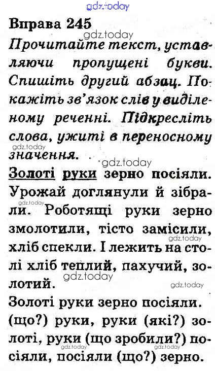 На страницах сайта gdz.today вы найдете учебный и вспомогательный материал, направленный на улучшения знаний школьной программы. ГДЗ - онлайн мир знаний Рішення до Вправи 245 Учебнику по Украинскому языку для 3 класса Захарийчук, Мовчун Грамота 2013