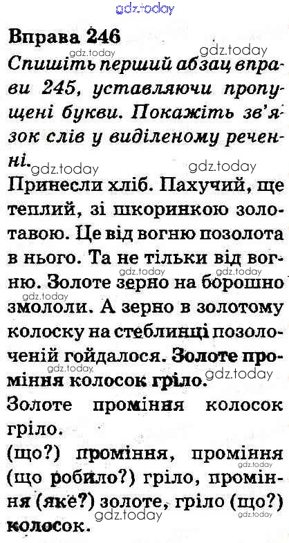 На страницах сайта gdz.today вы найдете учебный и вспомогательный материал, направленный на улучшения знаний школьной программы. ГДЗ - онлайн мир знаний Рішення до Вправи 246 Учебнику по Украинскому языку для 3 класса Захарийчук, Мовчун Грамота 2013