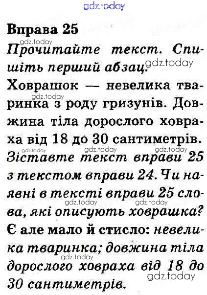 На страницах сайта gdz.today вы найдете учебный и вспомогательный материал, направленный на улучшения знаний школьной программы. ГДЗ - онлайн мир знаний Рішення до Вправи 25 Учебнику по Украинскому языку для 3 класса Захарийчук, Мовчун Грамота 2013