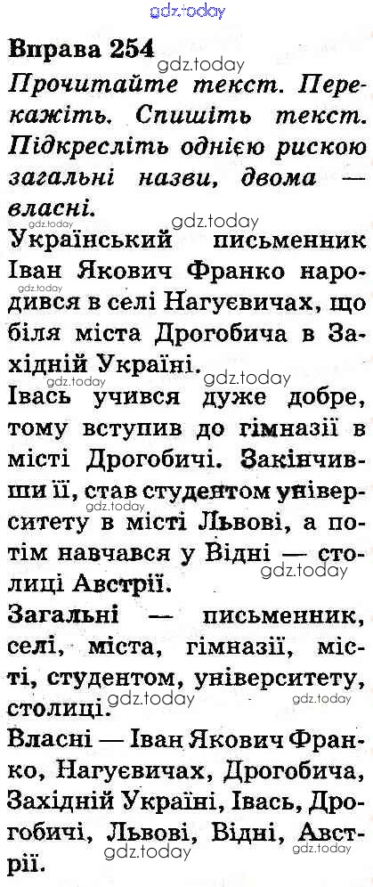 На страницах сайта gdz.today вы найдете учебный и вспомогательный материал, направленный на улучшения знаний школьной программы. ГДЗ - онлайн мир знаний Рішення до Вправи 254 Учебнику по Украинскому языку для 3 класса Захарийчук, Мовчун Грамота 2013
