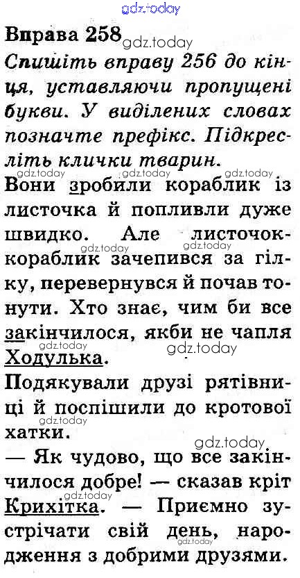 На страницах сайта gdz.today вы найдете учебный и вспомогательный материал, направленный на улучшения знаний школьной программы. ГДЗ - онлайн мир знаний Рішення до Вправи 258 Учебнику по Украинскому языку для 3 класса Захарийчук, Мовчун Грамота 2013