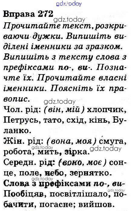 На страницах сайта gdz.today вы найдете учебный и вспомогательный материал, направленный на улучшения знаний школьной программы. ГДЗ - онлайн мир знаний Рішення до Вправи 272 Учебнику по Украинскому языку для 3 класса Захарийчук, Мовчун Грамота 2013