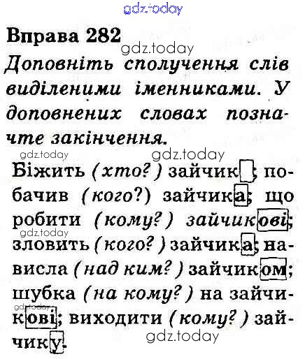 На страницах сайта gdz.today вы найдете учебный и вспомогательный материал, направленный на улучшения знаний школьной программы. ГДЗ - онлайн мир знаний Рішення до Вправи 282 Учебнику по Украинскому языку для 3 класса Захарийчук, Мовчун Грамота 2013