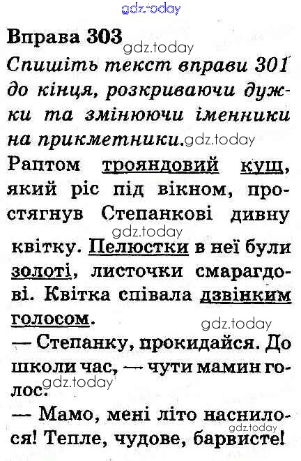 На страницах сайта gdz.today вы найдете учебный и вспомогательный материал, направленный на улучшения знаний школьной программы. ГДЗ - онлайн мир знаний Рішення до Вправи 303 Учебнику по Украинскому языку для 3 класса Захарийчук, Мовчун Грамота 2013