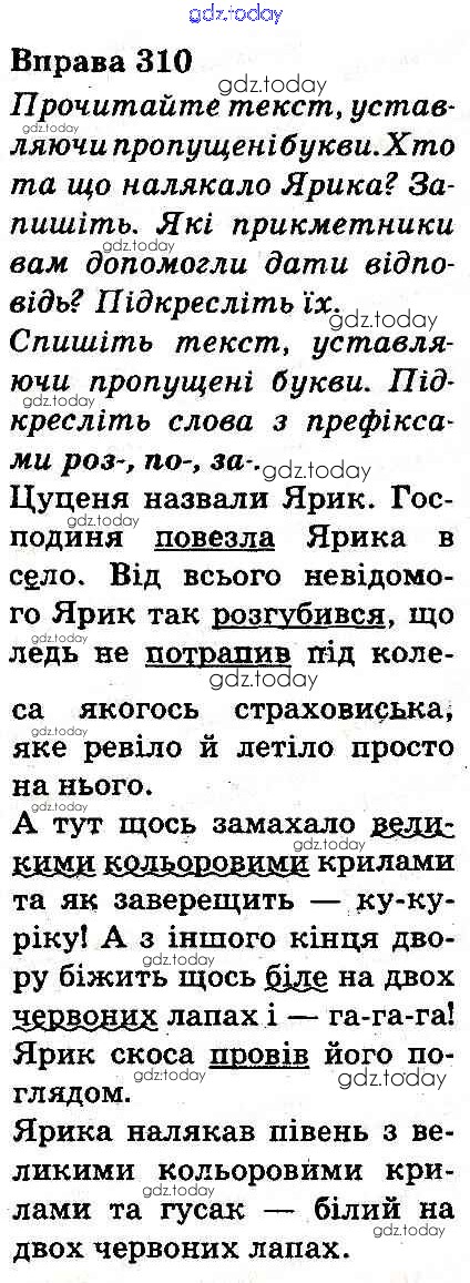 На страницах сайта gdz.today вы найдете учебный и вспомогательный материал, направленный на улучшения знаний школьной программы. ГДЗ - онлайн мир знаний Рішення до Вправи 310 Учебнику по Украинскому языку для 3 класса Захарийчук, Мовчун Грамота 2013