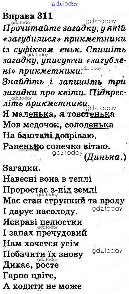 На страницах сайта gdz.today вы найдете учебный и вспомогательный материал, направленный на улучшения знаний школьной программы. ГДЗ - онлайн мир знаний Рішення до Вправи 311 Учебнику по Украинскому языку для 3 класса Захарийчук, Мовчун Грамота 2013
