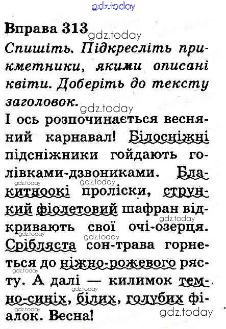 На страницах сайта gdz.today вы найдете учебный и вспомогательный материал, направленный на улучшения знаний школьной программы. ГДЗ - онлайн мир знаний Рішення до Вправи 313 Учебнику по Украинскому языку для 3 класса Захарийчук, Мовчун Грамота 2013