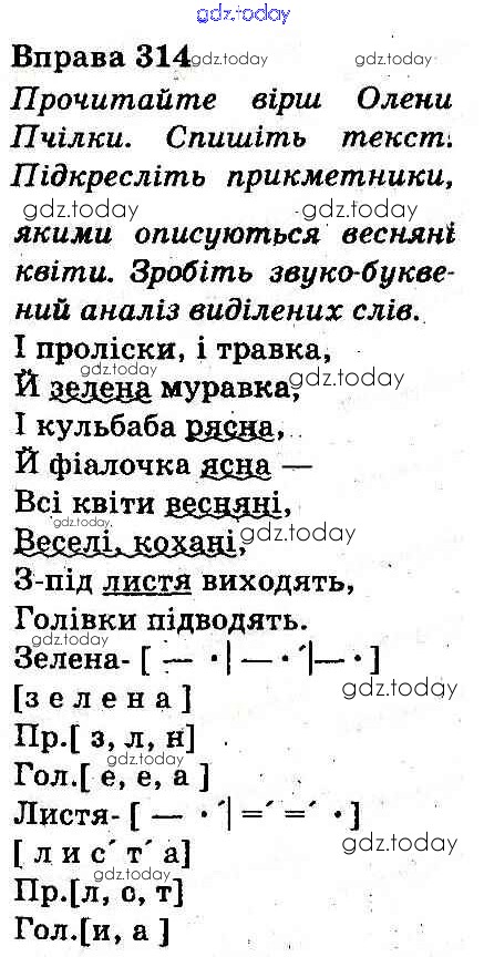 На страницах сайта gdz.today вы найдете учебный и вспомогательный материал, направленный на улучшения знаний школьной программы. ГДЗ - онлайн мир знаний Рішення до Вправи 314 Учебнику по Украинскому языку для 3 класса Захарийчук, Мовчун Грамота 2013