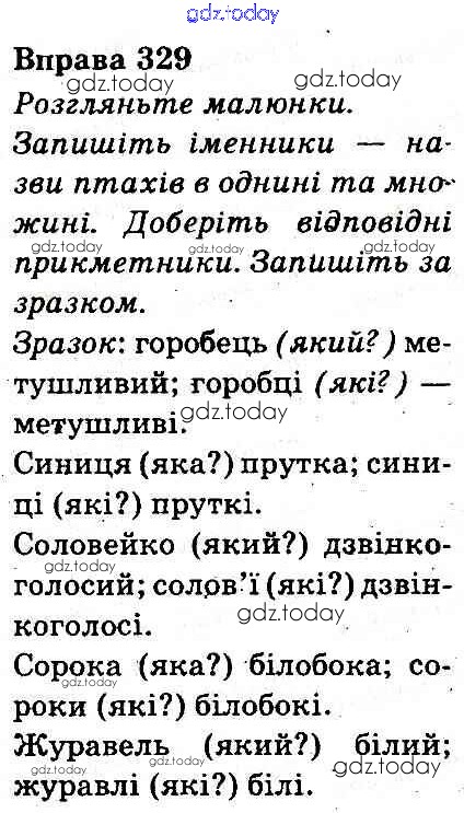 На страницах сайта gdz.today вы найдете учебный и вспомогательный материал, направленный на улучшения знаний школьной программы. ГДЗ - онлайн мир знаний Рішення до Вправи 329 Учебнику по Украинскому языку для 3 класса Захарийчук, Мовчун Грамота 2013