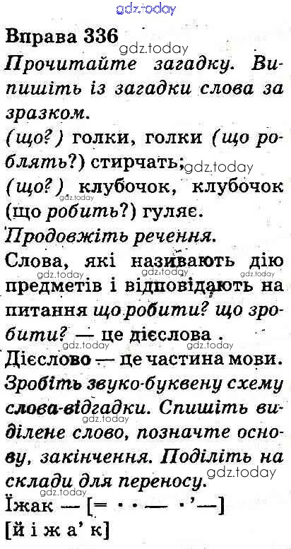 На страницах сайта gdz.today вы найдете учебный и вспомогательный материал, направленный на улучшения знаний школьной программы. ГДЗ - онлайн мир знаний Рішення до Вправи 336 Учебнику по Украинскому языку для 3 класса Захарийчук, Мовчун Грамота 2013