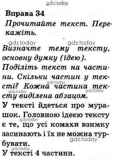На страницах сайта gdz.today вы найдете учебный и вспомогательный материал, направленный на улучшения знаний школьной программы. ГДЗ - онлайн мир знаний Рішення до Вправи 34 Учебнику по Украинскому языку для 3 класса Захарийчук, Мовчун Грамота 2013