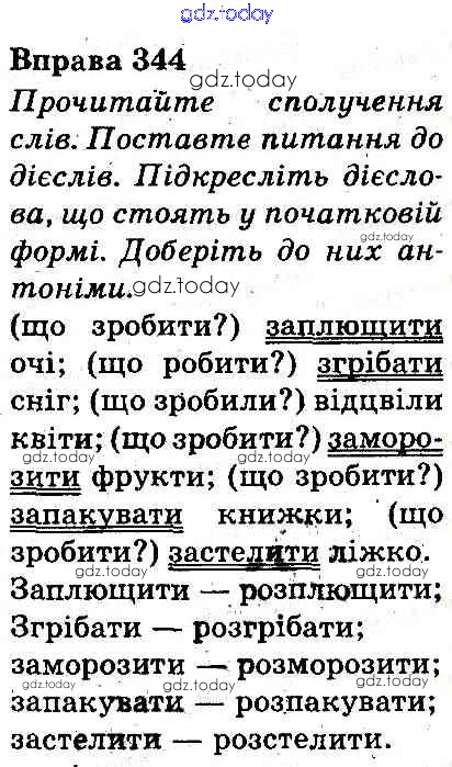 На страницах сайта gdz.today вы найдете учебный и вспомогательный материал, направленный на улучшения знаний школьной программы. ГДЗ - онлайн мир знаний Рішення до Вправи 344 Учебнику по Украинскому языку для 3 класса Захарийчук, Мовчун Грамота 2013