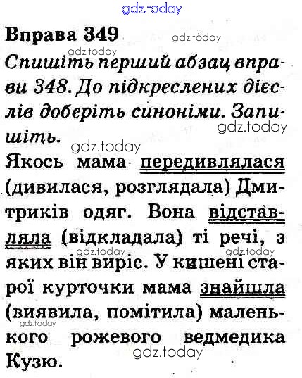 На страницах сайта gdz.today вы найдете учебный и вспомогательный материал, направленный на улучшения знаний школьной программы. ГДЗ - онлайн мир знаний Рішення до Вправи 349 Учебнику по Украинскому языку для 3 класса Захарийчук, Мовчун Грамота 2013