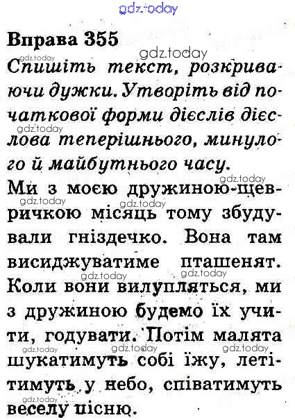 На страницах сайта gdz.today вы найдете учебный и вспомогательный материал, направленный на улучшения знаний школьной программы. ГДЗ - онлайн мир знаний Рішення до Вправи 355 Учебнику по Украинскому языку для 3 класса Захарийчук, Мовчун Грамота 2013