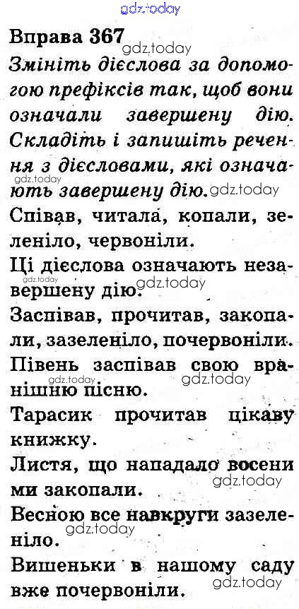 На страницах сайта gdz.today вы найдете учебный и вспомогательный материал, направленный на улучшения знаний школьной программы. ГДЗ - онлайн мир знаний Рішення до Вправи 367 Учебнику по Украинскому языку для 3 класса Захарийчук, Мовчун Грамота 2013