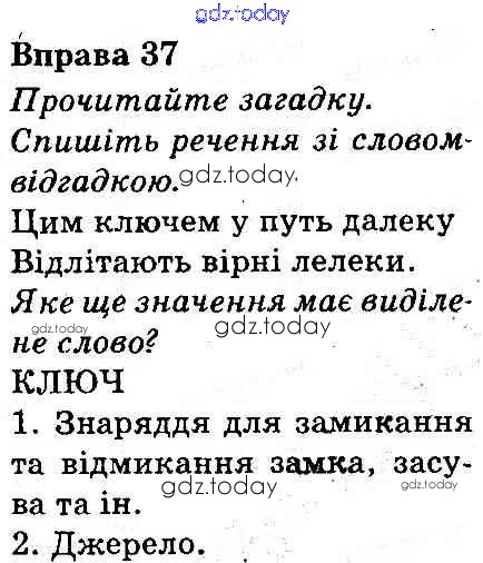 На страницах сайта gdz.today вы найдете учебный и вспомогательный материал, направленный на улучшения знаний школьной программы. ГДЗ - онлайн мир знаний Рішення до Вправи 37 Учебнику по Украинскому языку для 3 класса Захарийчук, Мовчун Грамота 2013