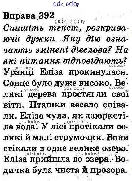 На страницах сайта gdz.today вы найдете учебный и вспомогательный материал, направленный на улучшения знаний школьной программы. ГДЗ - онлайн мир знаний Рішення до Вправи 392 Учебнику по Украинскому языку для 3 класса Захарийчук, Мовчун Грамота 2013