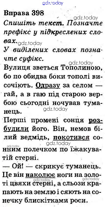 На страницах сайта gdz.today вы найдете учебный и вспомогательный материал, направленный на улучшения знаний школьной программы. ГДЗ - онлайн мир знаний Рішення до Вправи 398 Учебнику по Украинскому языку для 3 класса Захарийчук, Мовчун Грамота 2013