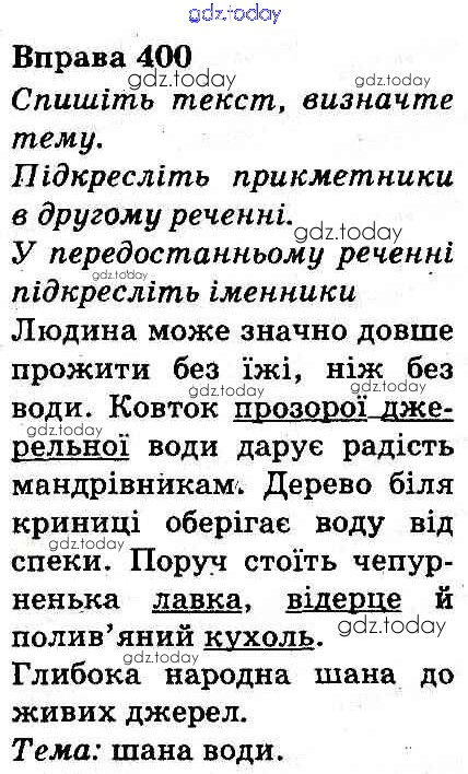 На страницах сайта gdz.today вы найдете учебный и вспомогательный материал, направленный на улучшения знаний школьной программы. ГДЗ - онлайн мир знаний Рішення до Вправи 400 Учебнику по Украинскому языку для 3 класса Захарийчук, Мовчун Грамота 2013