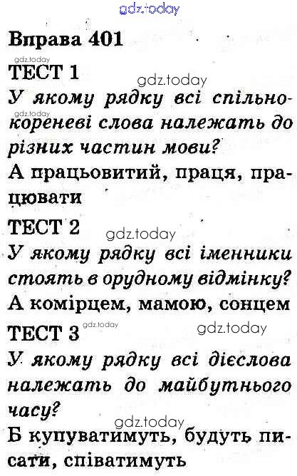 На страницах сайта gdz.today вы найдете учебный и вспомогательный материал, направленный на улучшения знаний школьной программы. ГДЗ - онлайн мир знаний Рішення до Вправи 401 Учебнику по Украинскому языку для 3 класса Захарийчук, Мовчун Грамота 2013