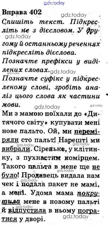 На страницах сайта gdz.today вы найдете учебный и вспомогательный материал, направленный на улучшения знаний школьной программы. ГДЗ - онлайн мир знаний Рішення до Вправи 402 Учебнику по Украинскому языку для 3 класса Захарийчук, Мовчун Грамота 2013