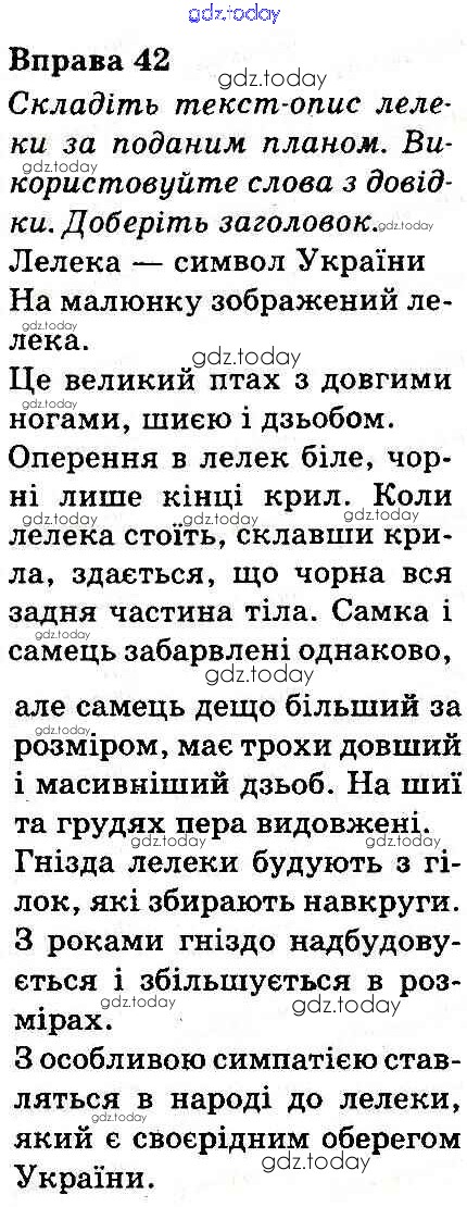 На страницах сайта gdz.today вы найдете учебный и вспомогательный материал, направленный на улучшения знаний школьной программы. ГДЗ - онлайн мир знаний Рішення до Вправи 42 Учебнику по Украинскому языку для 3 класса Захарийчук, Мовчун Грамота 2013