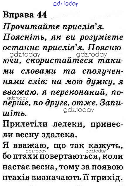 На страницах сайта gdz.today вы найдете учебный и вспомогательный материал, направленный на улучшения знаний школьной программы. ГДЗ - онлайн мир знаний Рішення до Вправи 44 Учебнику по Украинскому языку для 3 класса Захарийчук, Мовчун Грамота 2013