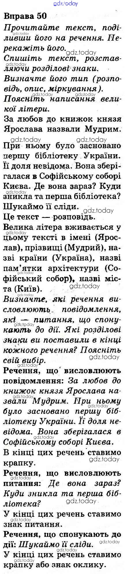 На страницах сайта gdz.today вы найдете учебный и вспомогательный материал, направленный на улучшения знаний школьной программы. ГДЗ - онлайн мир знаний Рішення до Вправи 50 Учебнику по Украинскому языку для 3 класса Захарийчук, Мовчун Грамота 2013