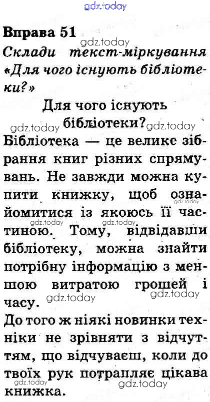 На страницах сайта gdz.today вы найдете учебный и вспомогательный материал, направленный на улучшения знаний школьной программы. ГДЗ - онлайн мир знаний Рішення до Вправи 51 Учебнику по Украинскому языку для 3 класса Захарийчук, Мовчун Грамота 2013
