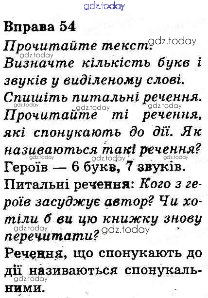 На страницах сайта gdz.today вы найдете учебный и вспомогательный материал, направленный на улучшения знаний школьной программы. ГДЗ - онлайн мир знаний Рішення до Вправи 54 Учебнику по Украинскому языку для 3 класса Захарийчук, Мовчун Грамота 2013