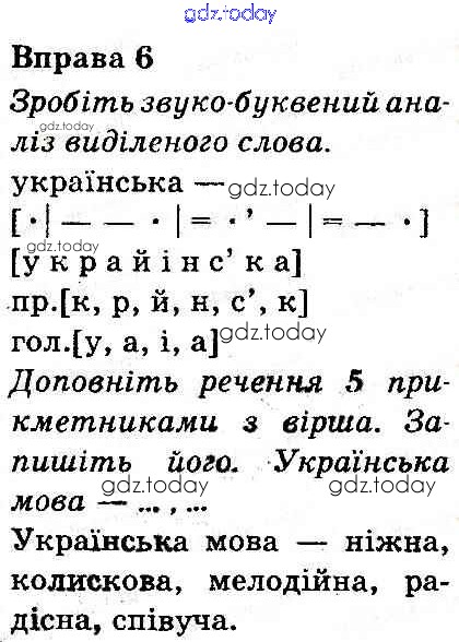 На страницах сайта gdz.today вы найдете учебный и вспомогательный материал, направленный на улучшения знаний школьной программы. ГДЗ - онлайн мир знаний Рішення до Вправи 6 Учебнику по Украинскому языку для 3 класса Захарийчук, Мовчун Грамота 2013