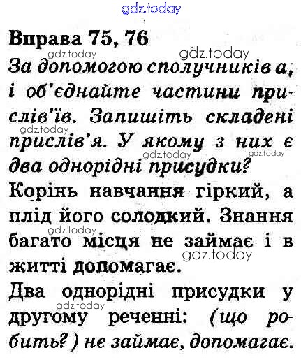 На страницах сайта gdz.today вы найдете учебный и вспомогательный материал, направленный на улучшения знаний школьной программы. ГДЗ - онлайн мир знаний Рішення до Вправи 75 Учебнику по Украинскому языку для 3 класса Захарийчук, Мовчун Грамота 2013