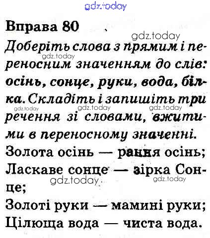 На страницах сайта gdz.today вы найдете учебный и вспомогательный материал, направленный на улучшения знаний школьной программы. ГДЗ - онлайн мир знаний Рішення до Вправи 80 Учебнику по Украинскому языку для 3 класса Захарийчук, Мовчун Грамота 2013
