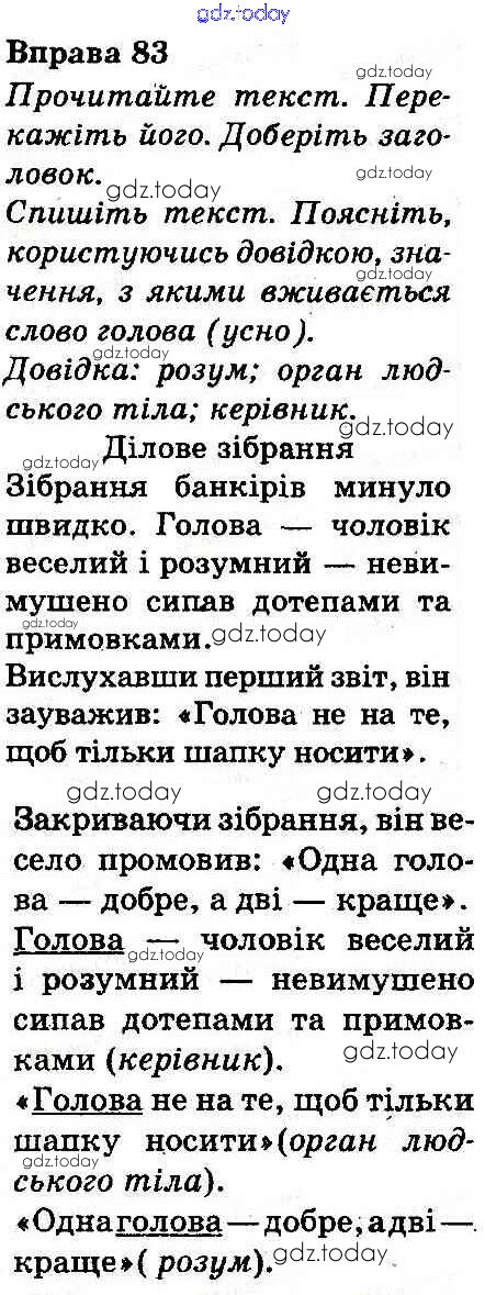 На страницах сайта gdz.today вы найдете учебный и вспомогательный материал, направленный на улучшения знаний школьной программы. ГДЗ - онлайн мир знаний Рішення до Вправи 83 Учебнику по Украинскому языку для 3 класса Захарийчук, Мовчун Грамота 2013