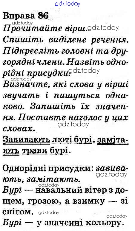 На страницах сайта gdz.today вы найдете учебный и вспомогательный материал, направленный на улучшения знаний школьной программы. ГДЗ - онлайн мир знаний Рішення до Вправи 86 Учебнику по Украинскому языку для 3 класса Захарийчук, Мовчун Грамота 2013