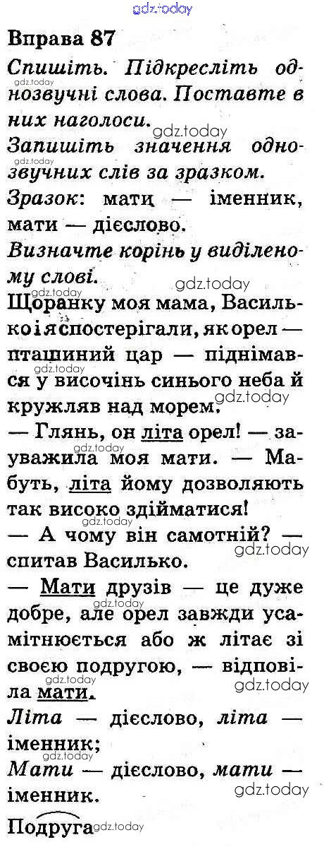 На страницах сайта gdz.today вы найдете учебный и вспомогательный материал, направленный на улучшения знаний школьной программы. ГДЗ - онлайн мир знаний Рішення до Вправи 87 Учебнику по Украинскому языку для 3 класса Захарийчук, Мовчун Грамота 2013