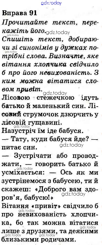 На страницах сайта gdz.today вы найдете учебный и вспомогательный материал, направленный на улучшения знаний школьной программы. ГДЗ - онлайн мир знаний Рішення до Вправи 91 Учебнику по Украинскому языку для 3 класса Захарийчук, Мовчун Грамота 2013