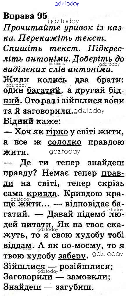 На страницах сайта gdz.today вы найдете учебный и вспомогательный материал, направленный на улучшения знаний школьной программы. ГДЗ - онлайн мир знаний Рішення до Вправи 95 Учебнику по Украинскому языку для 3 класса Захарийчук, Мовчун Грамота 2013