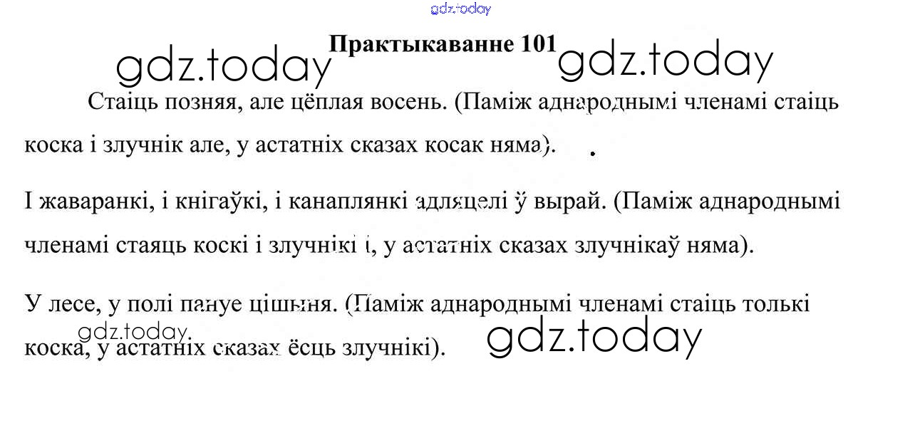 На страницах сайта gdz.today вы найдете учебный и вспомогательный материал, направленный на улучшения знаний школьной программы. ГДЗ - онлайн мир знаний Рашальнік да часткі 1. Практыкаванні 101 Учебнику по Белорусскому языку для 4 класса Свірыдзенка Национальный институт образования 2018