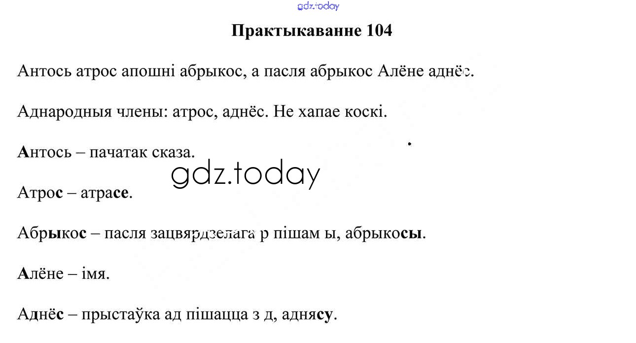 На страницах сайта gdz.today вы найдете учебный и вспомогательный материал, направленный на улучшения знаний школьной программы. ГДЗ - онлайн мир знаний Рашальнік да часткі 1. Практыкаванні 104 Учебнику по Белорусскому языку для 4 класса Свірыдзенка Национальный институт образования 2018