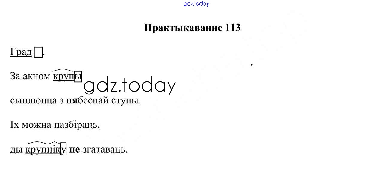 На страницах сайта gdz.today вы найдете учебный и вспомогательный материал, направленный на улучшения знаний школьной программы. ГДЗ - онлайн мир знаний Рашальнік да часткі 1. Практыкаванні 113 Учебнику по Белорусскому языку для 4 класса Свірыдзенка Национальный институт образования 2018