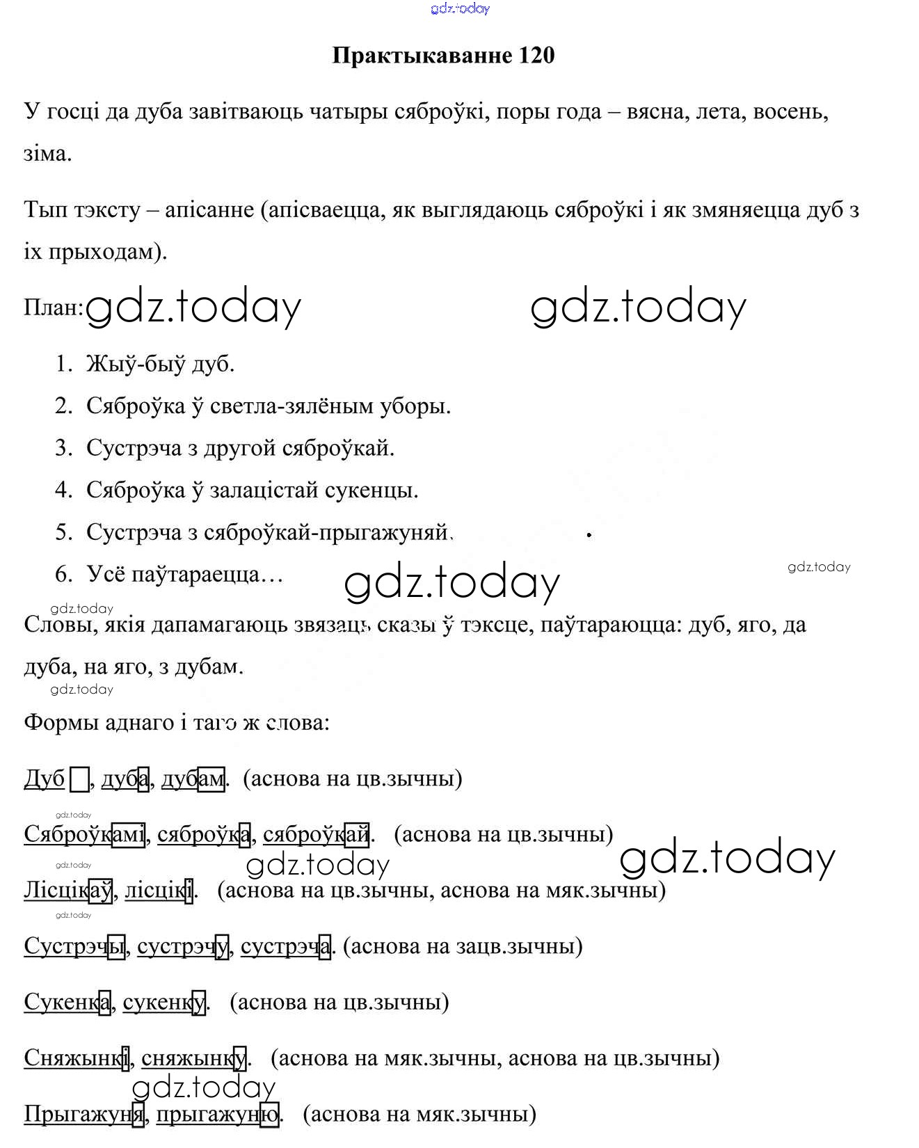 На страницах сайта gdz.today вы найдете учебный и вспомогательный материал, направленный на улучшения знаний школьной программы. ГДЗ - онлайн мир знаний Рашальнік да часткі 1. Практыкаванні 120 Учебнику по Белорусскому языку для 4 класса Свірыдзенка Национальный институт образования 2018